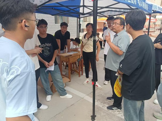 开学当日,我系领导与教师领导深入迎新现场,慰问工作人员与志愿者,并与新生亲切交谈。帮助学生登记资料,引导新生熟悉学院,指挥工作,深入一线。
