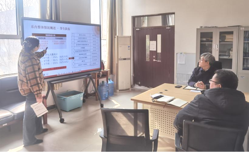 会上,机电工程系主任徐媛全面汇报了本系整体发展情况:师资队伍学历层次高、专业素养扎实,“双师型”教师队伍建设成效显著,构建了一支教学能力突出的教学团队;现有专业布局合理,紧密对接区域产业发展,学生实习就业广泛覆盖汽车产业链相关领域;产教融合工作稳步推进,中德合作等特色项目按计划推进,深化校企合作,积极与行业内重点企业洽谈;面对师资配置、实训条件优化、产教融合深度及学生就业质量提升的发展瓶颈,初步探索了跨院系资源共享等破解路径。